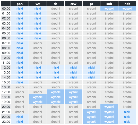 To najpopularniejsze weekendowe godziny, w których dużo się dzieje. Kursy w godzinach TOP to przede wszystkim wyjazdy i powroty z imprez i spotkań ze znajomymi.